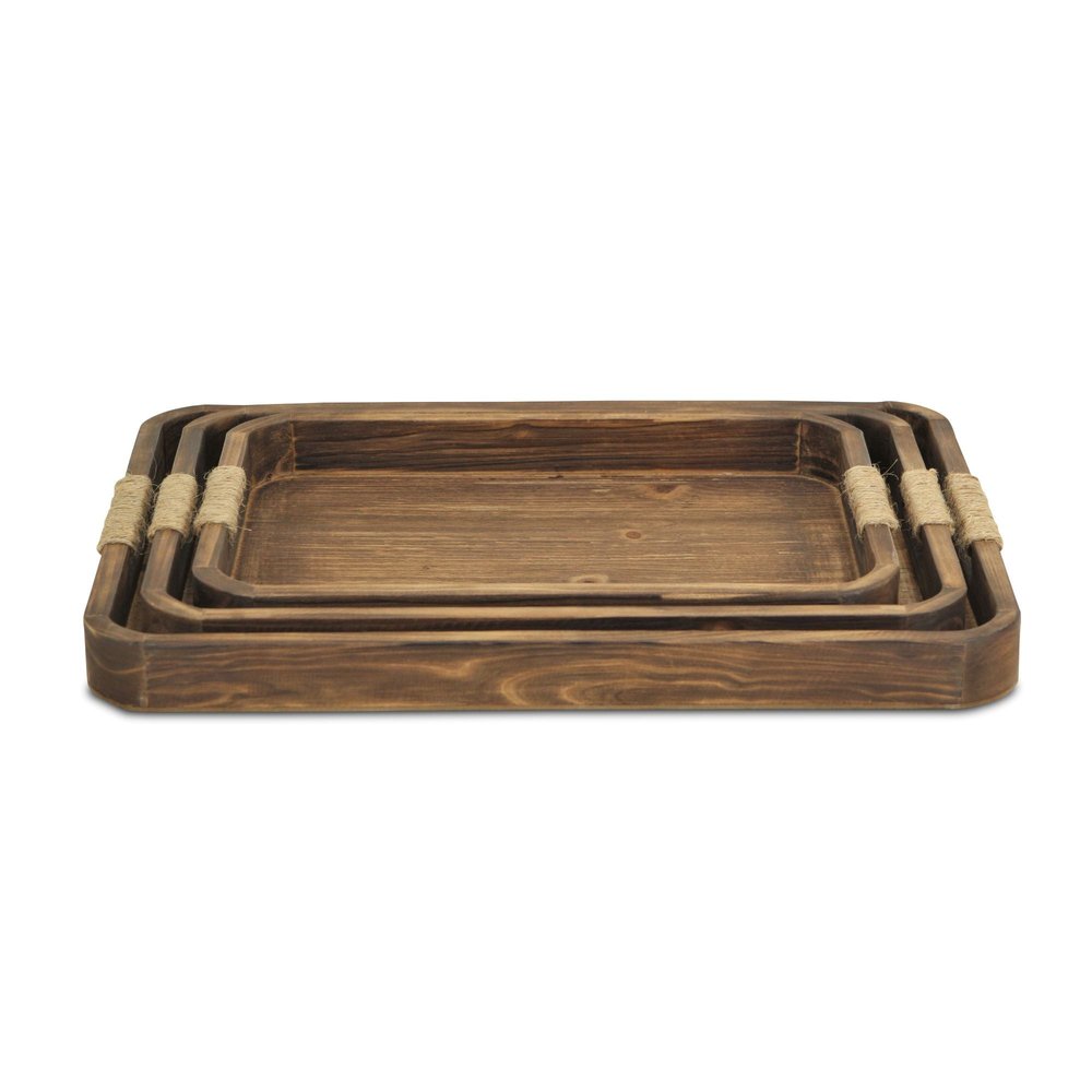 20" Brown Rectangular Wood Handmade Tray With Handles