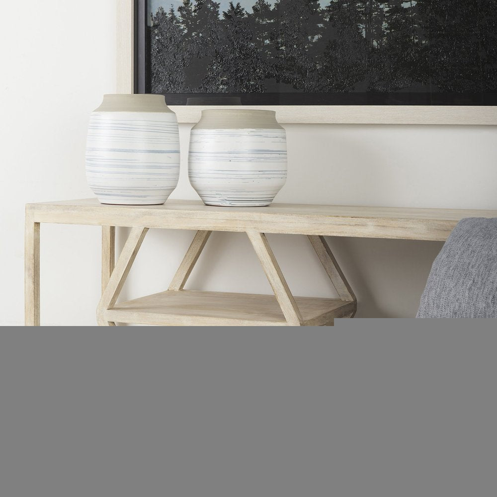 10" Blue Sand And White Abstract Cylinder Ceramic Table Vase