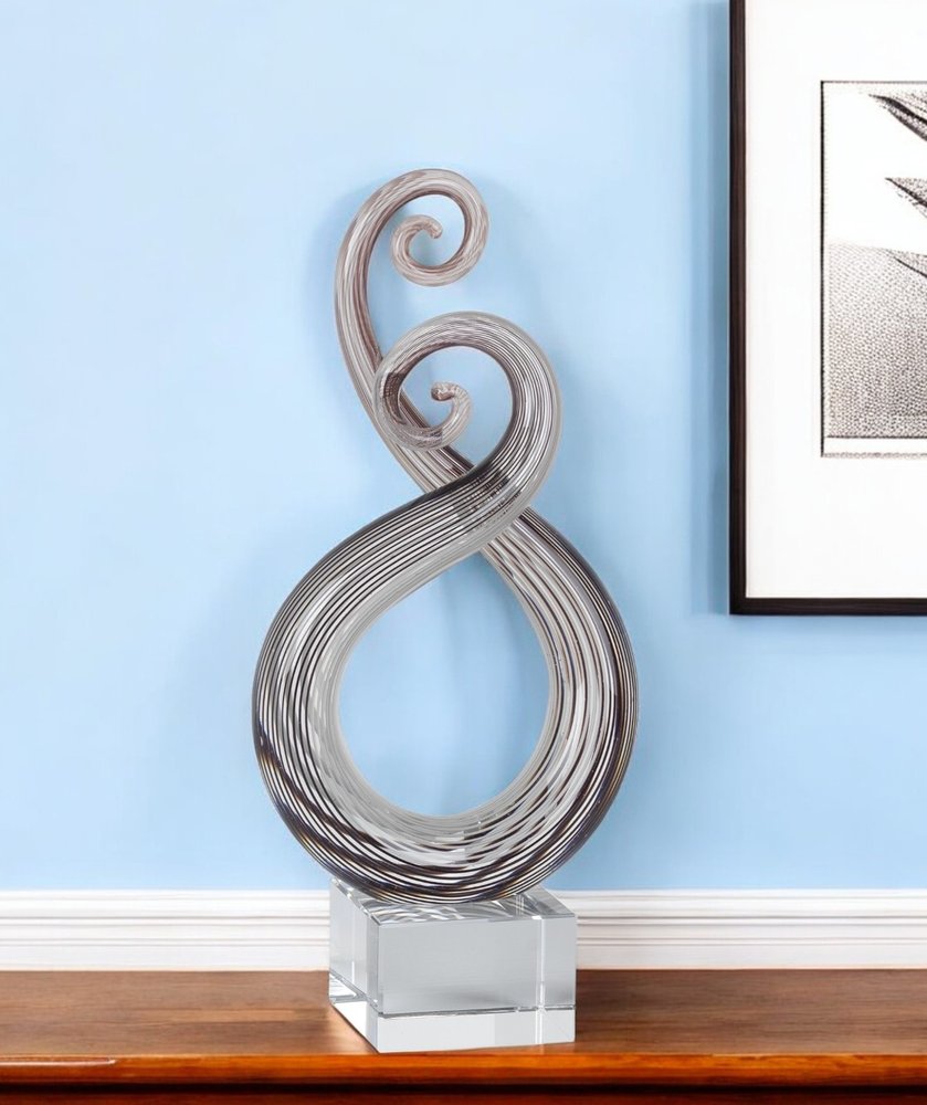 11" Clear and Brown Murano Glass Modern Abstract Tabletop Sculpture