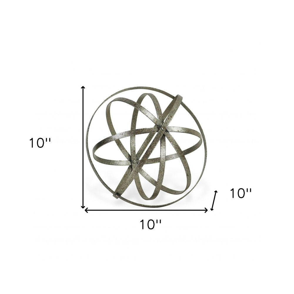 10" Silver Metal Hand Painted Decorative Orb Tabletop Sculpture