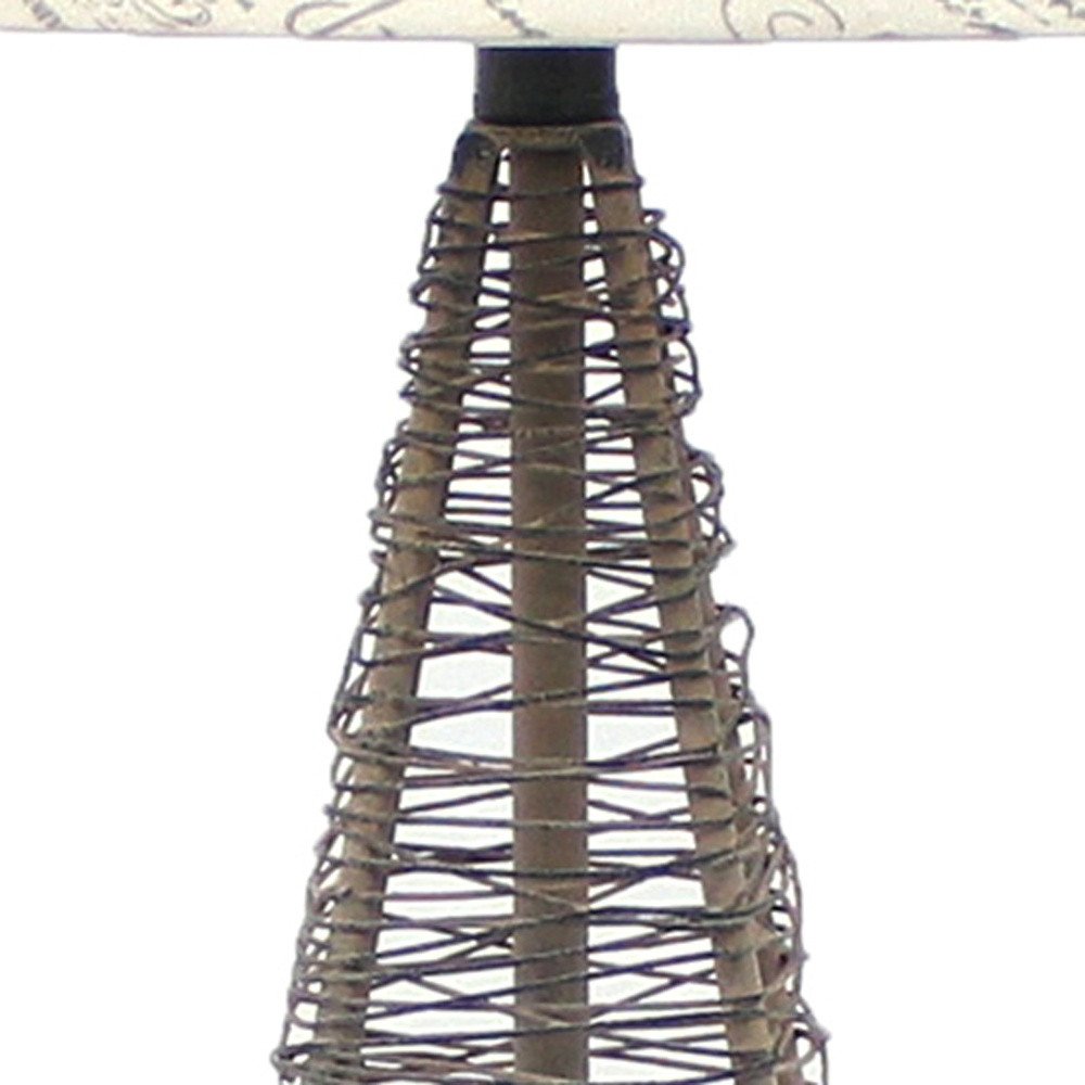 29" Gray Metal Geometric Bedside With White Text Drum Shade