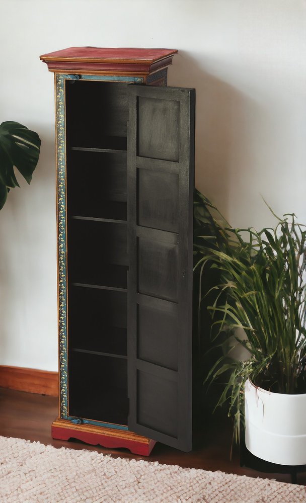 60" Red Blue and Gold Hand Painted Accent Cabinet