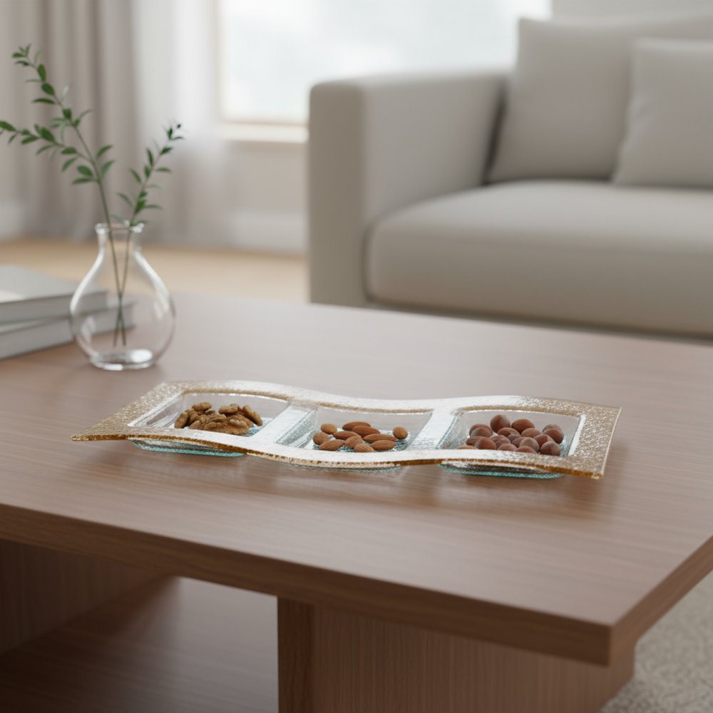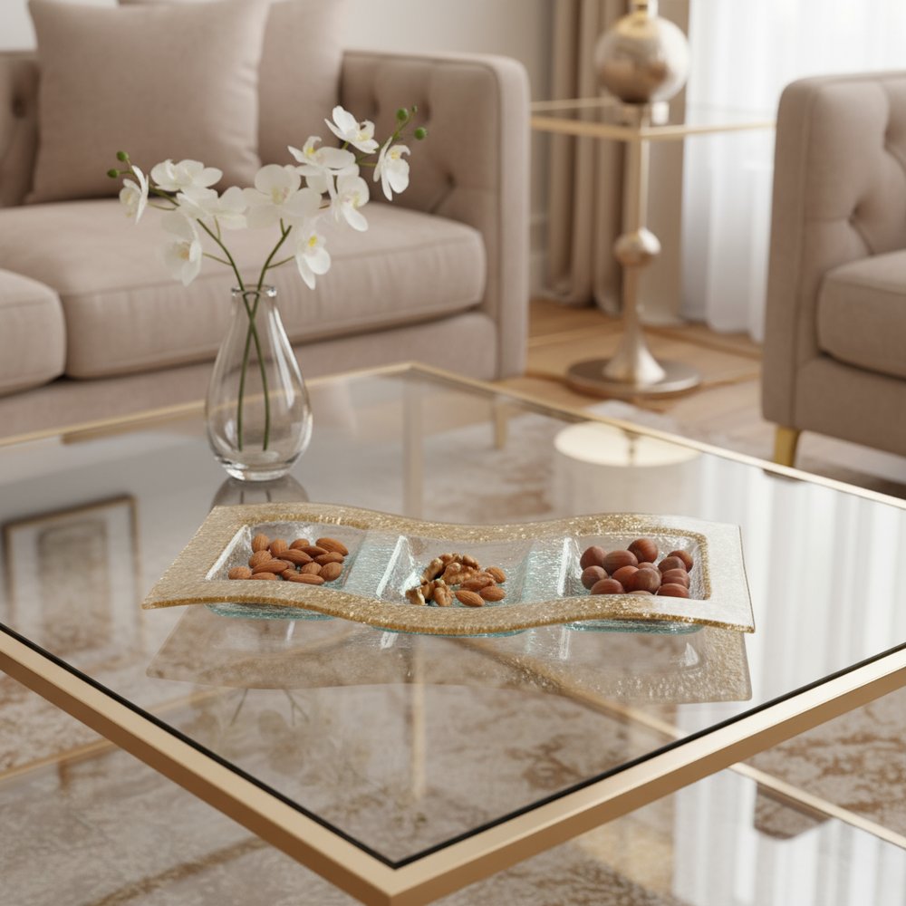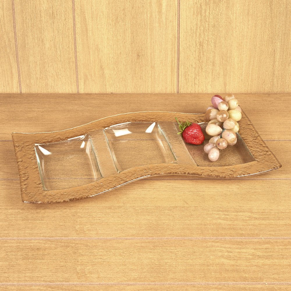 17" Clear And Gold Rectangular Glass Handmade Divided Serving Dish