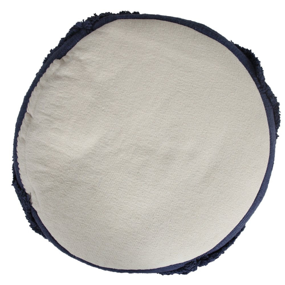 18" Blue Cotton Cylinder Geometric Pouf Ottoman
