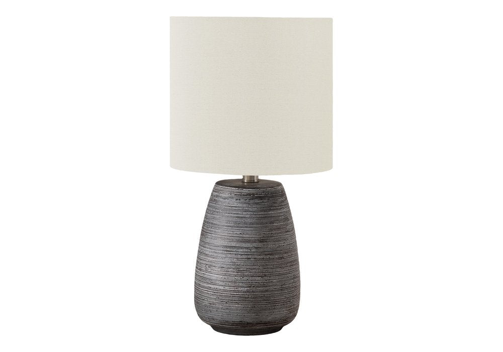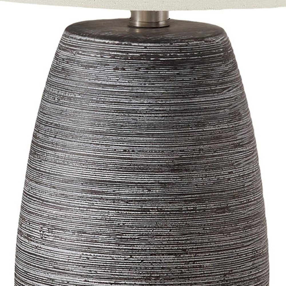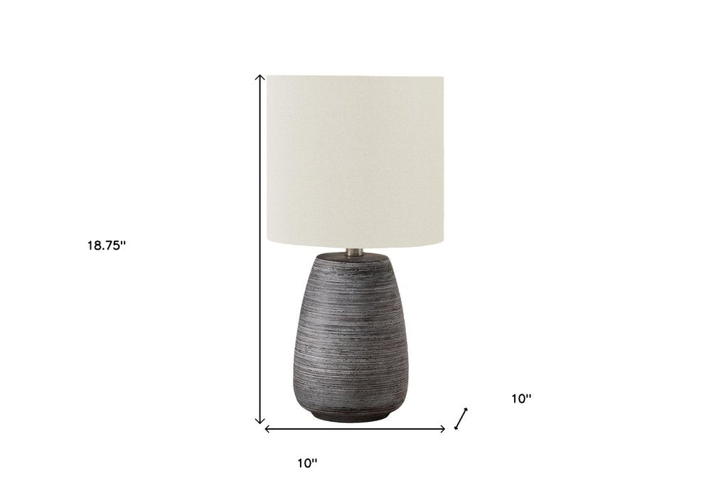 19" Gray Ceramic Round Table Lamp With Ivory Drum Shade