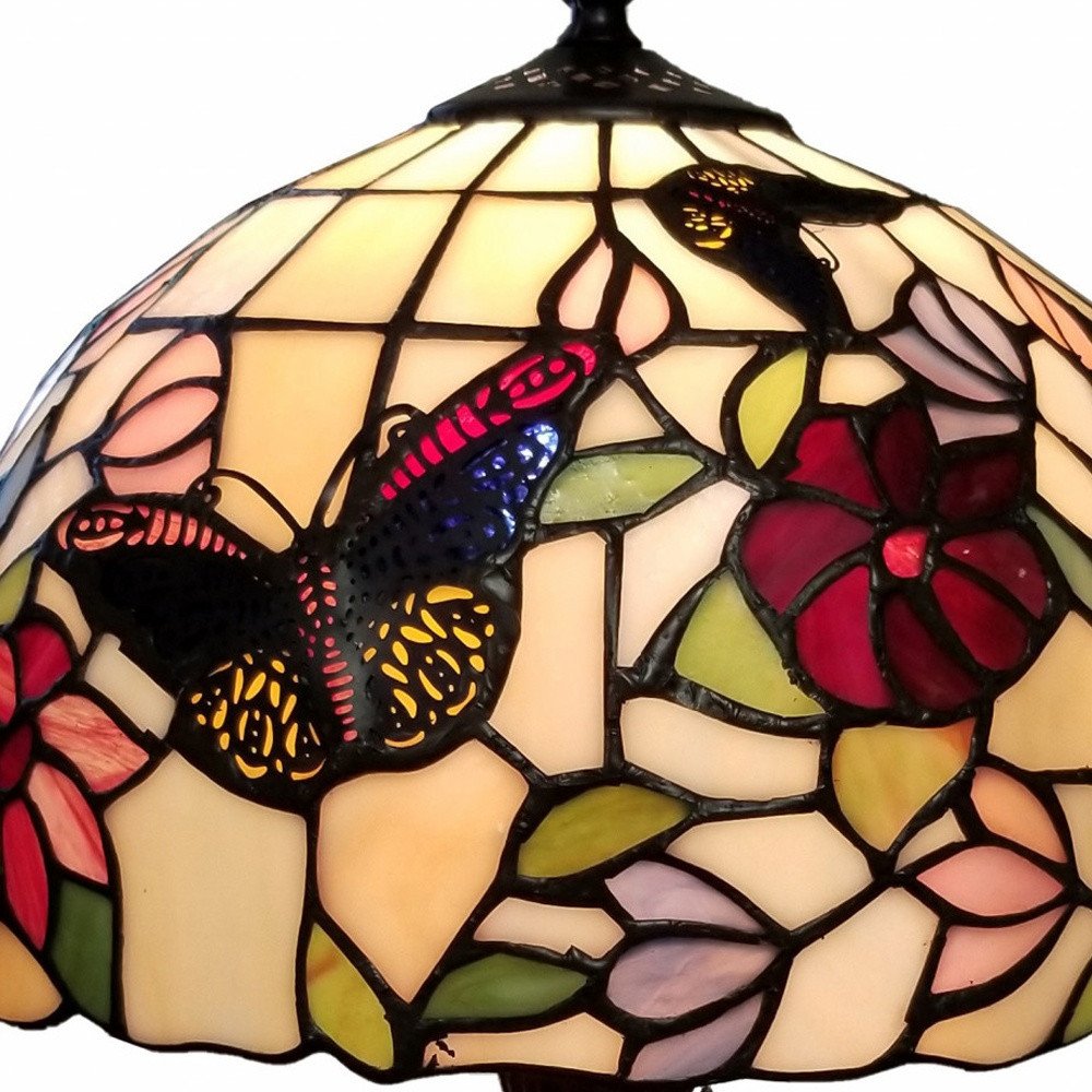 19" Dark Brown Metal Candlestick Table Lamp With Red and Black Dome Shade