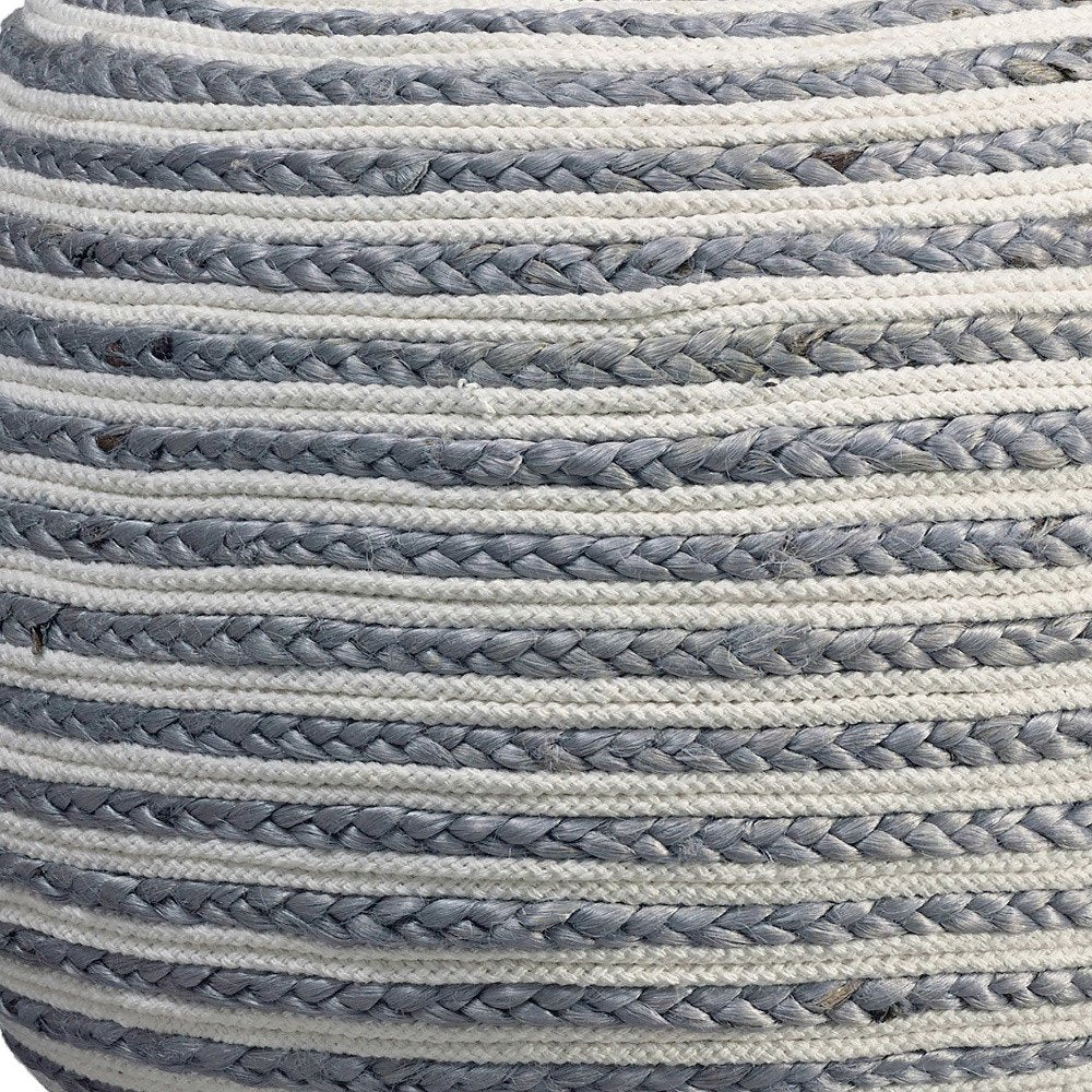 20" White Cotton Blend Round Striped Pouf Ottoman