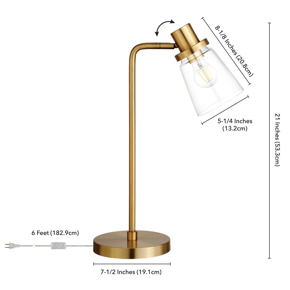 21" Brass Metal Arched Table Lamp With Clear Cone Shade