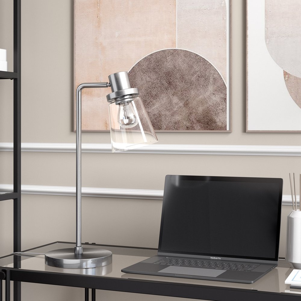 21" Nickel Metal Arched Table Lamp With Clear Cone Shade