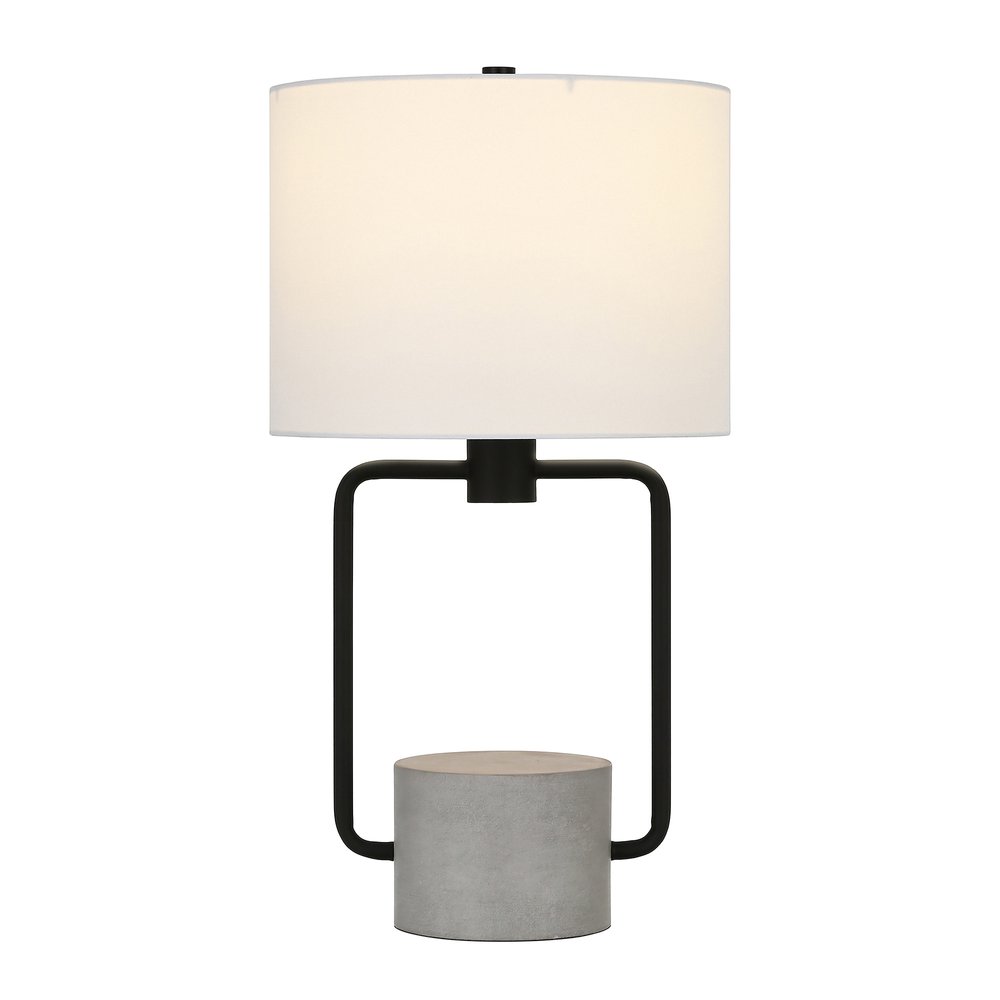 22" black concrete table lamp, concrete table lamp white drum, black concrete table lamp, concrete table lamp, table lamp white drum shade |