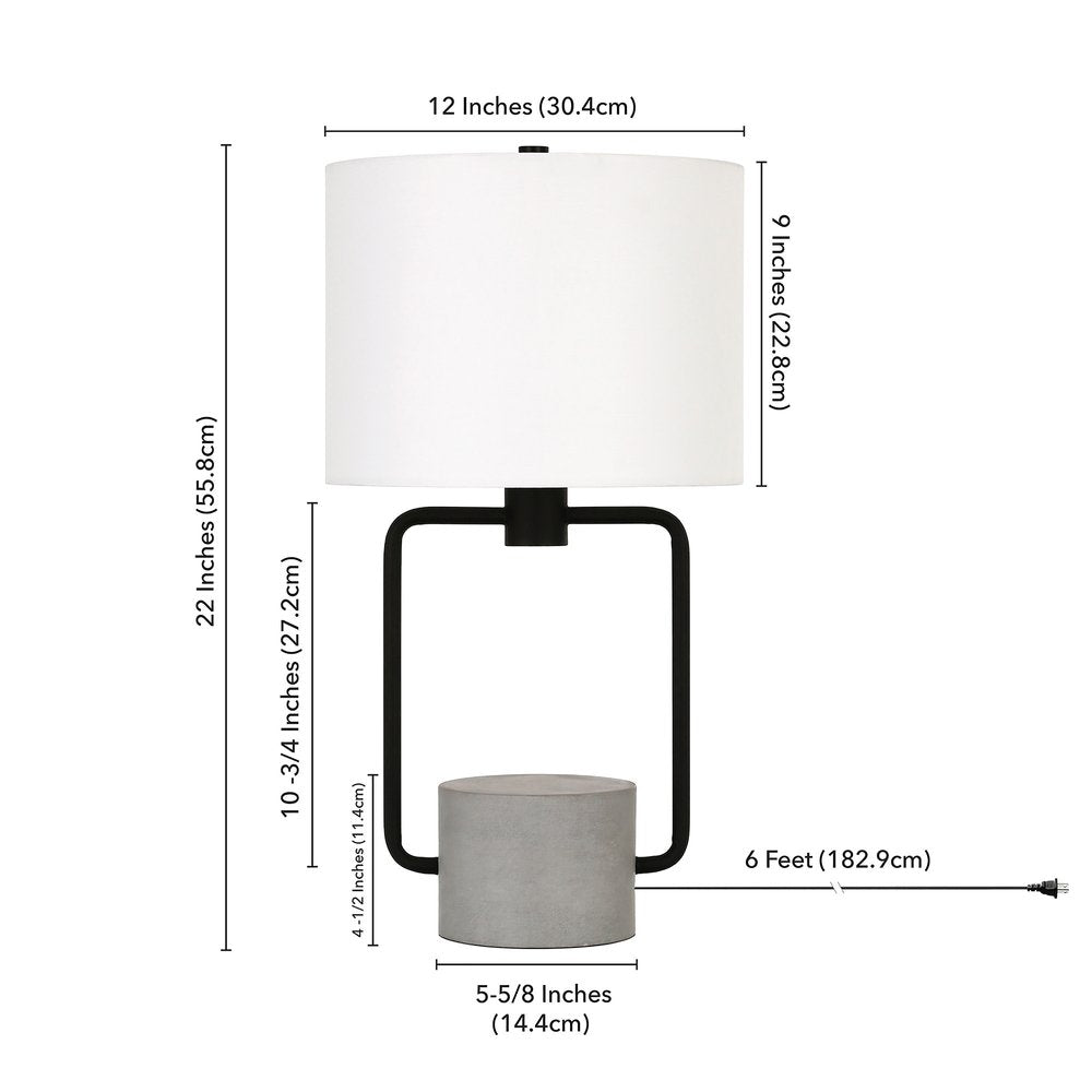 This 22-inch black and gray concrete table lamp with white drum shade is a great way to add some brightness to any corner of your home. The base of this lamp is made of black and gray concrete. The white drum fabric shade is a great compliment to this lamp. This standard table lamp is designed to provide general lighting to the area. The light that this lamp throws is soft and warm to elevate the look of most any space in your home. The perfect lamp to create just the right natural and soothing light in your space. 22-inch H x 12-inch W x 12-inch D