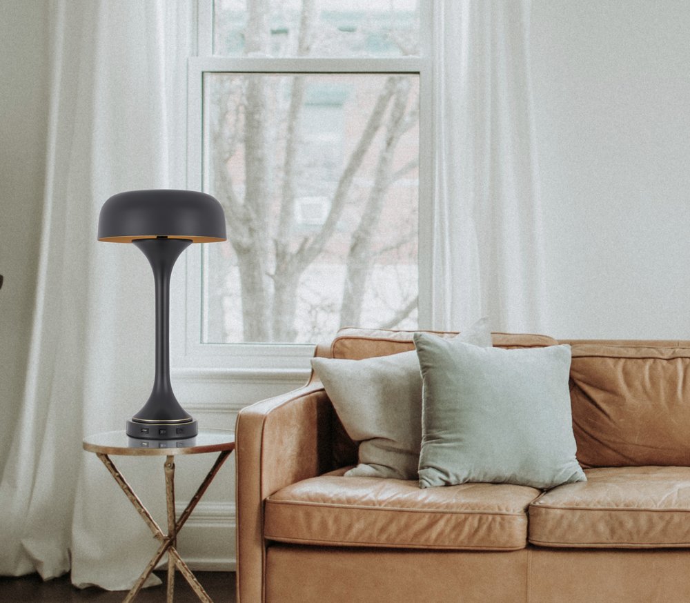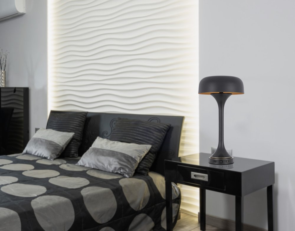 22" Black Metal Two Light Novelty USB Table Lamp With Black Dome Shade
