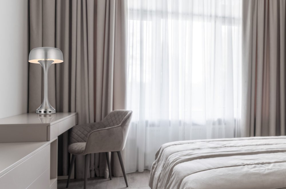 22" Nickel Metal Two Light Usb Table Lamp With Nickel Dome Shade