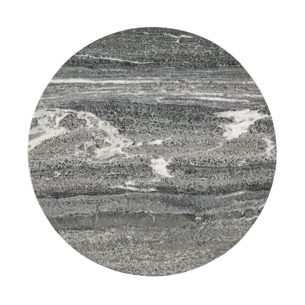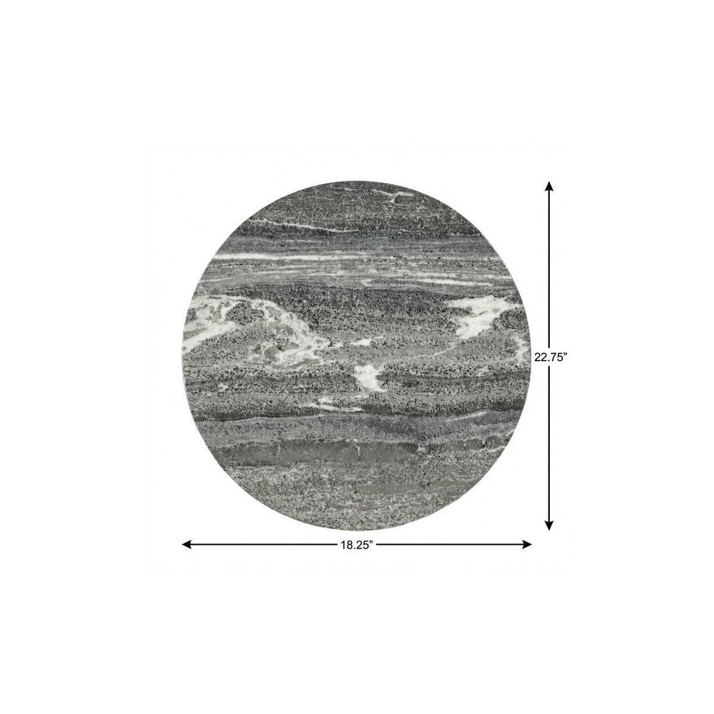 23" Brass And Gray Marble Round End Table
