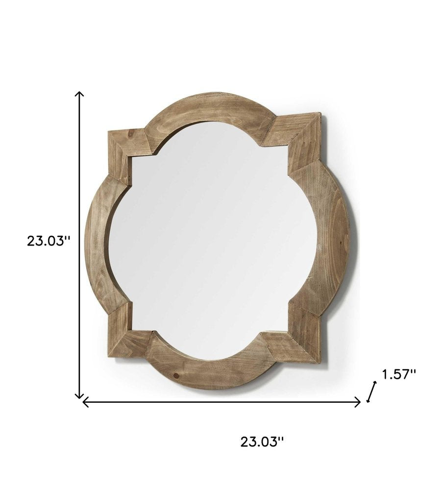 23" Round-Square Brown Wood Frame Wall Mirror