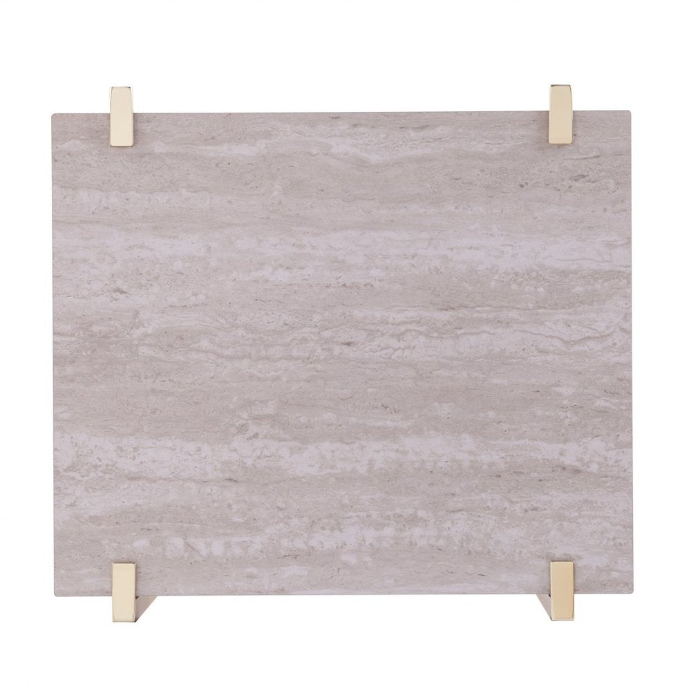 24" Brass Manufactured Wood And Iron Square End Table With Shelf