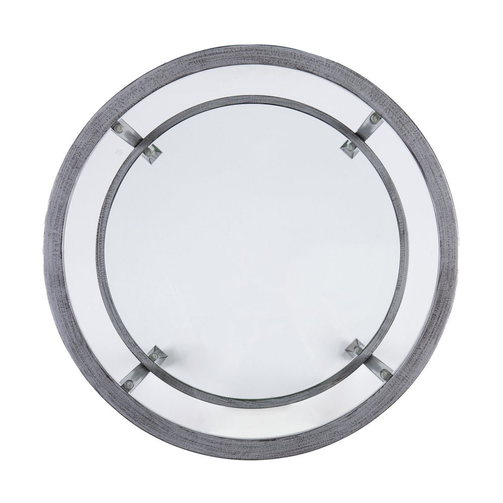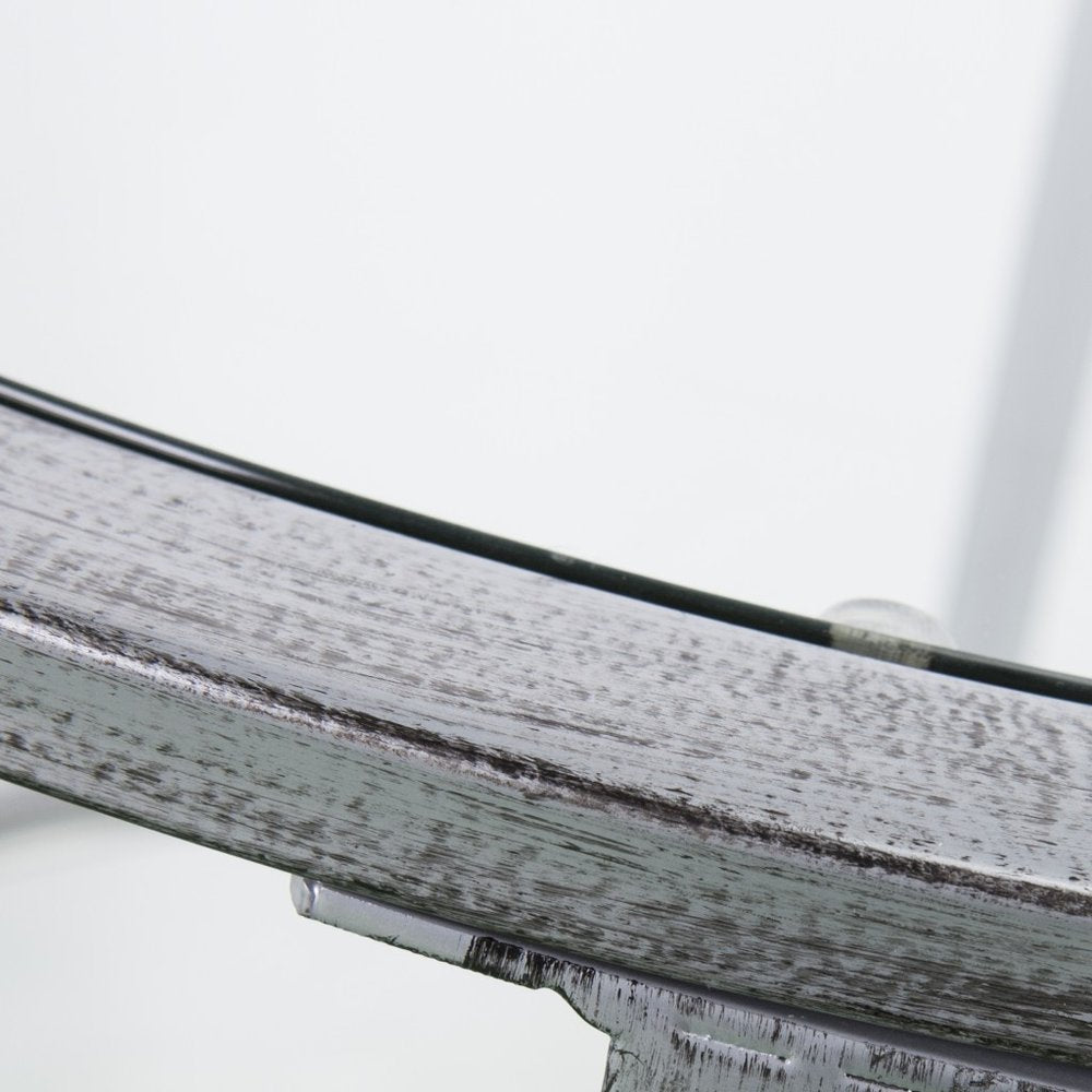 24" Silver And Clear Glass And Distressed Iron Round End Table With Shelf