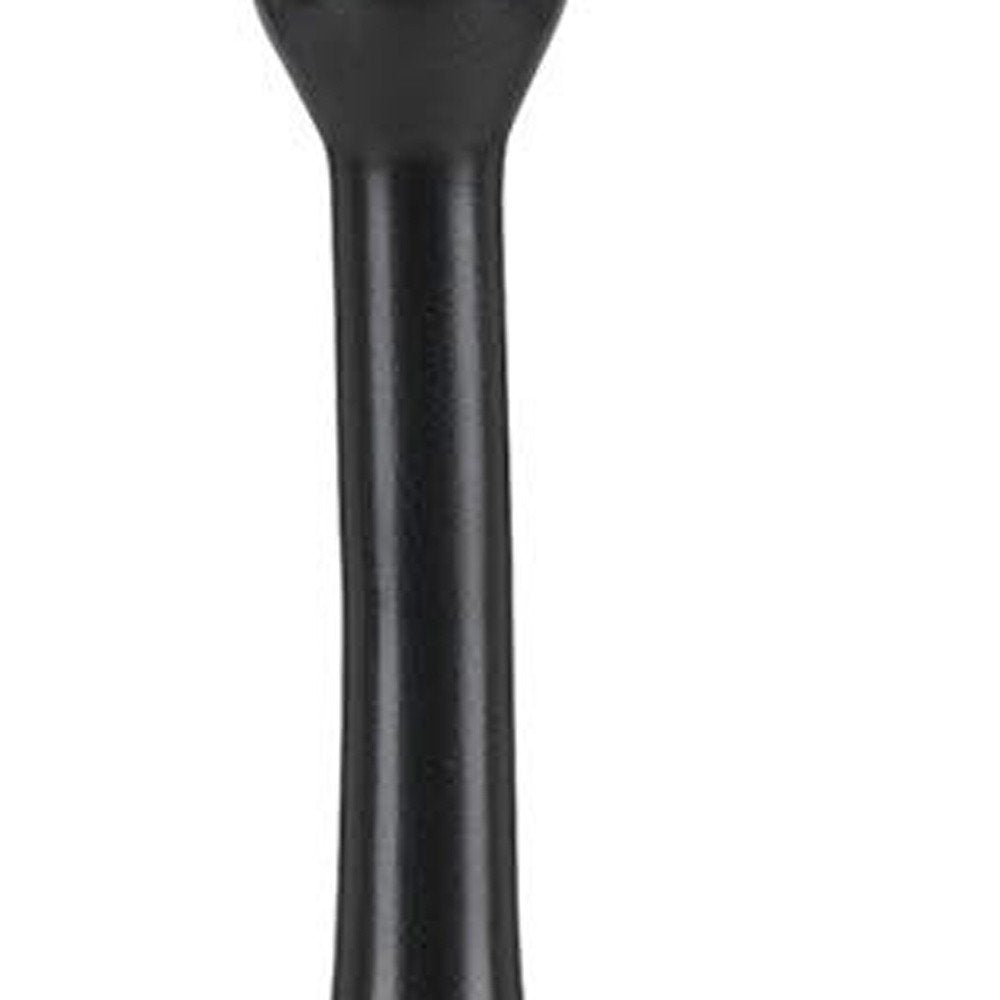 25" Blackened Bronze Metal Round Table Lamp With Off White Drum Shade