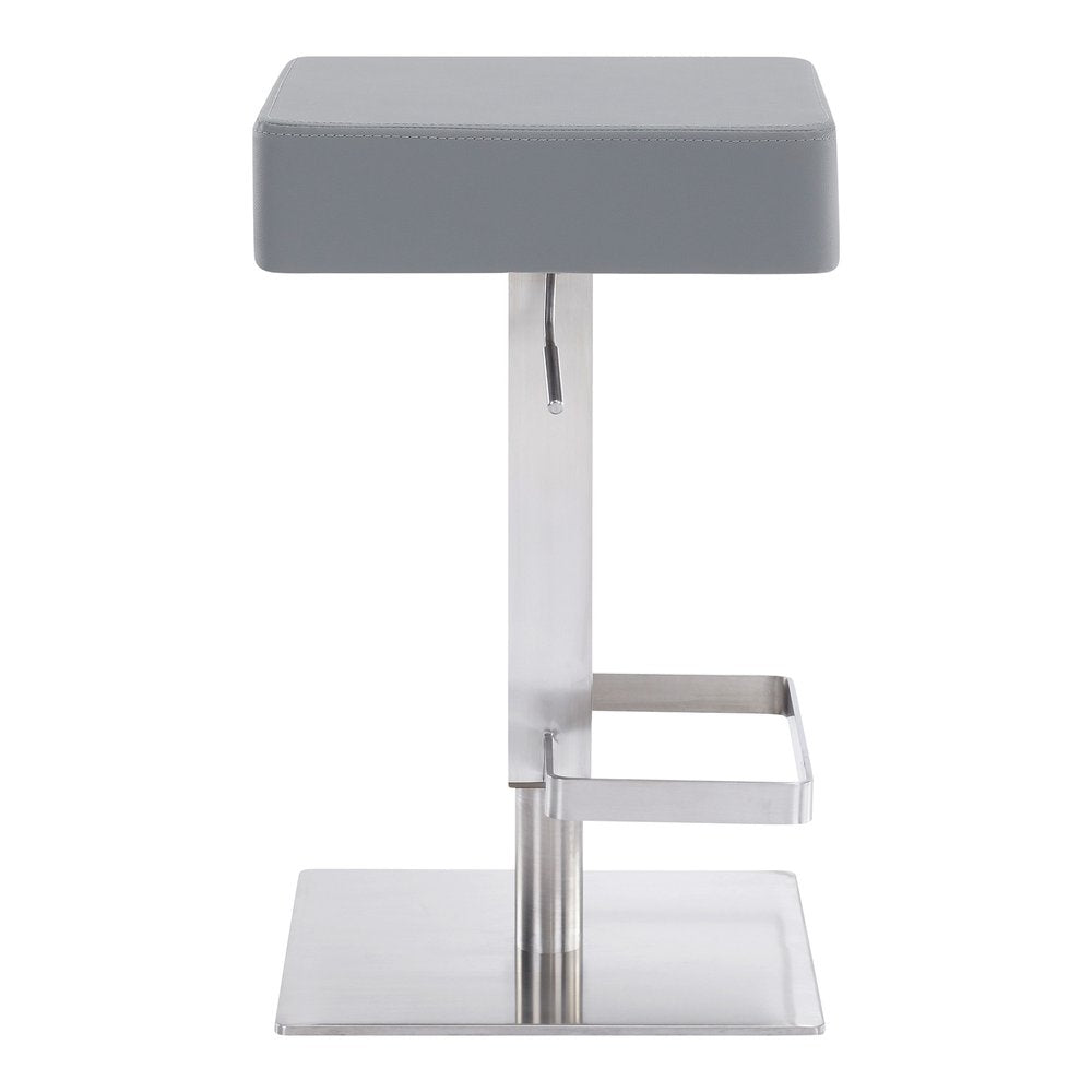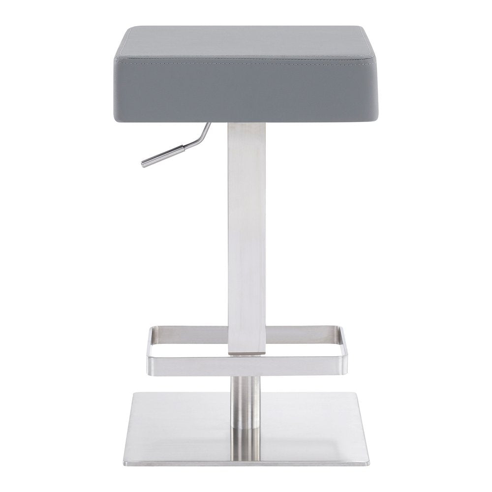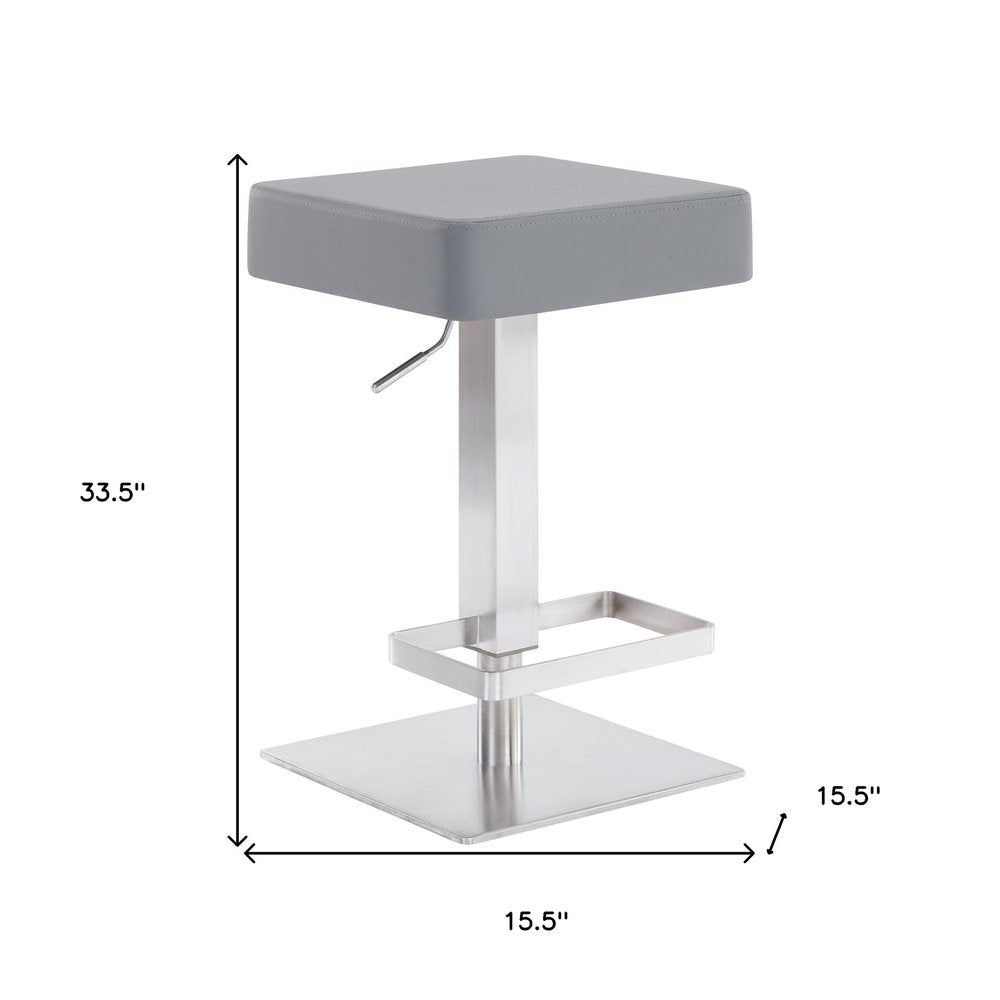 25" Gray And Silver Faux Leather And Iron Swivel Backless Adjustable Height Bar Chair