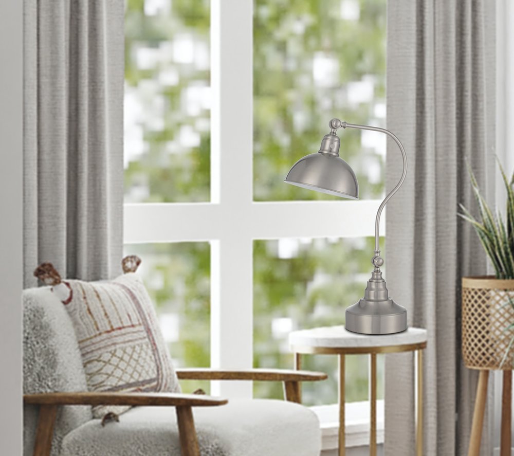 25" Nickel Metal Lantern Desk Table Lamp With Nickel Dome Shade