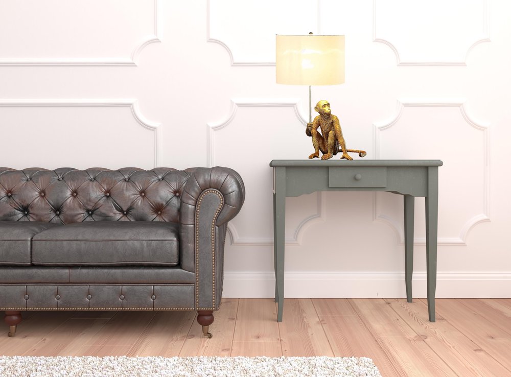 26" Antiqued Gold Sitting Monkey Table Lamp With White