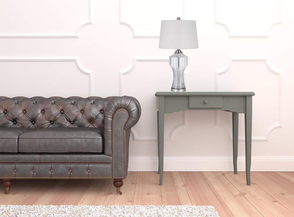 26" Clear Glass Table Lamp With White Empire Shade