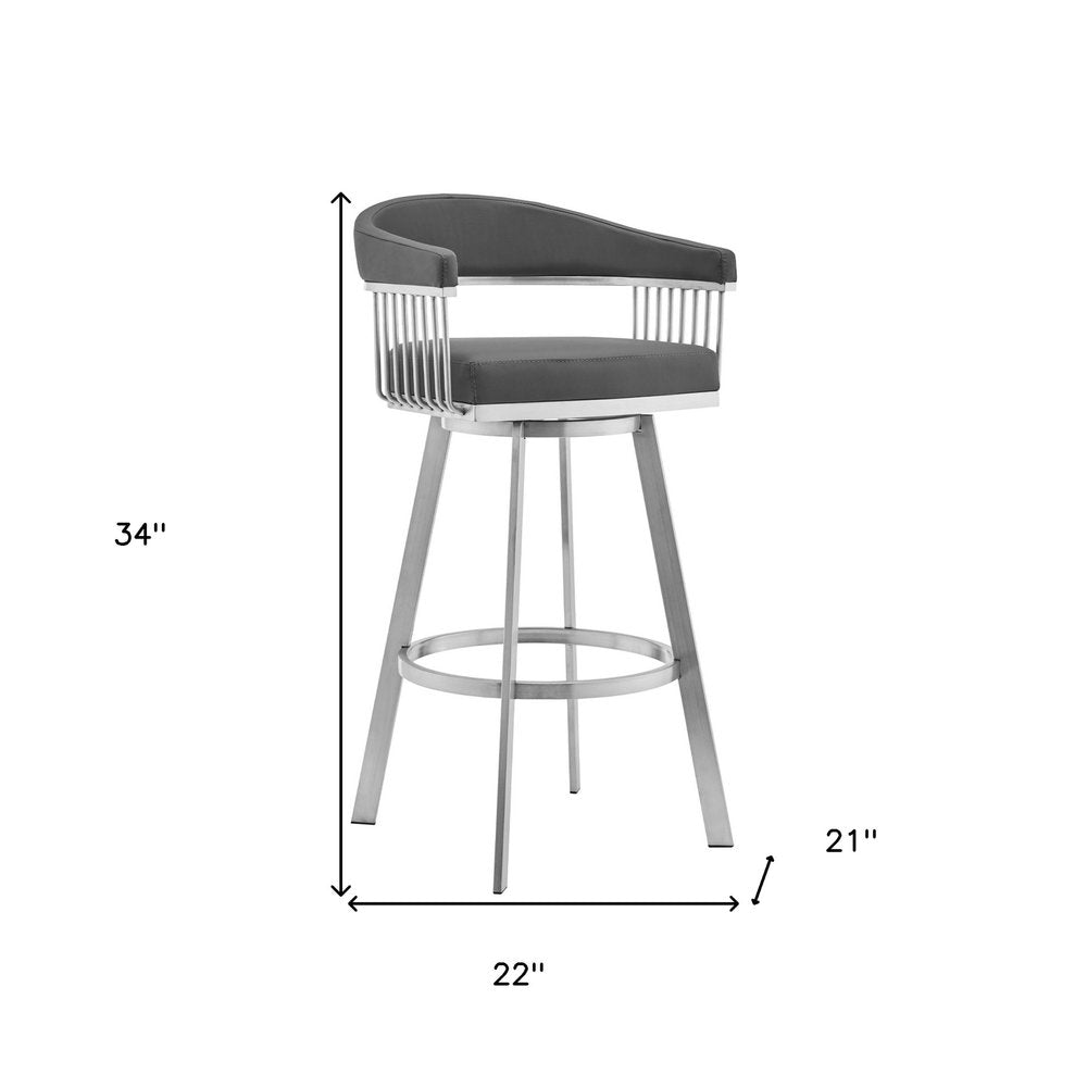 25" Gray And Silver Iron Swivel Backless Counter Height Bar Chair