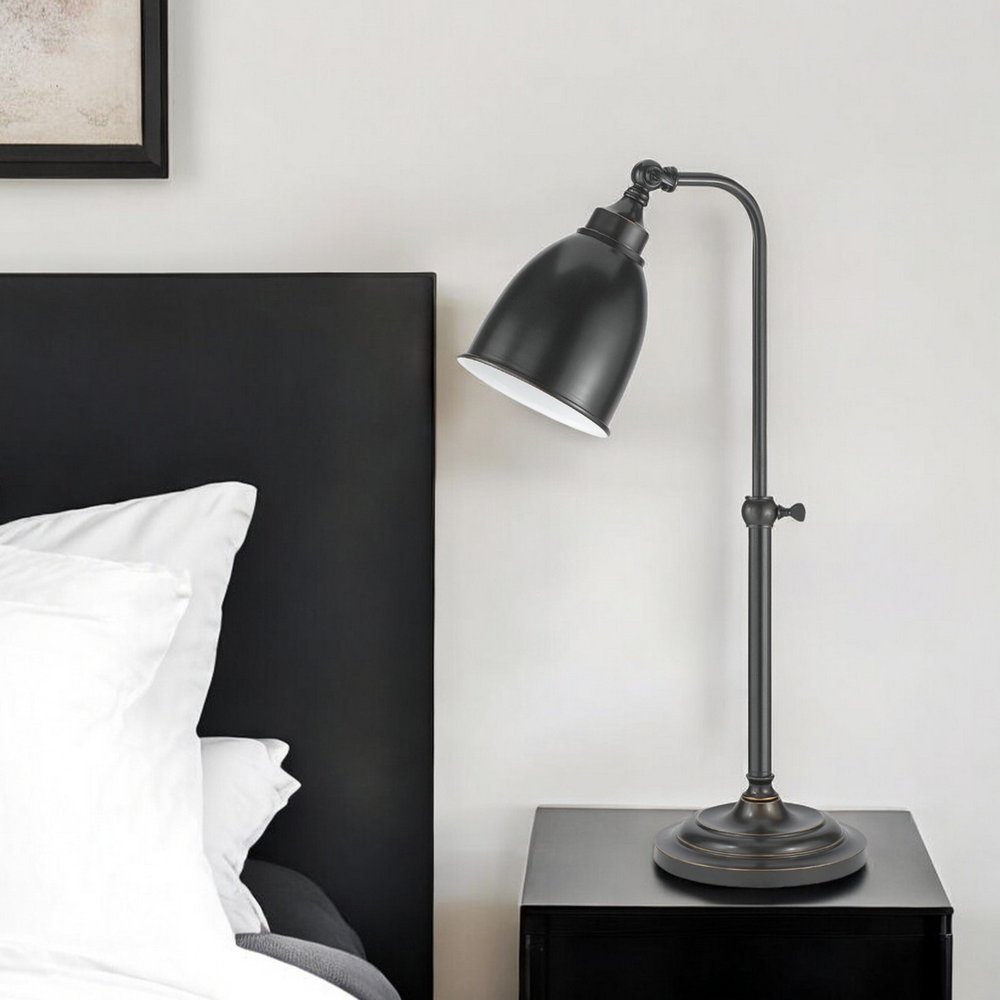 27" Bronze Metal Adjustable Lantern Table Lamp With Bronze Dome Shade