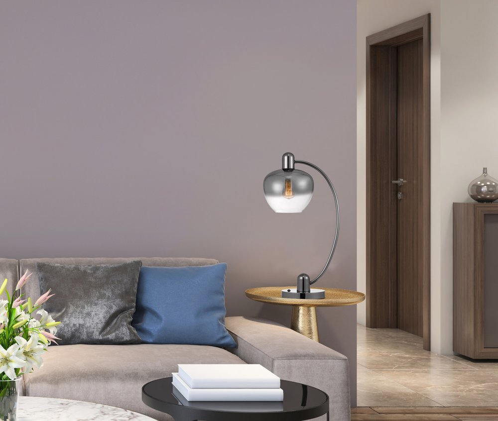 27" Gunmetal Metal Table Lamp With Silver Metallic Globe Shade