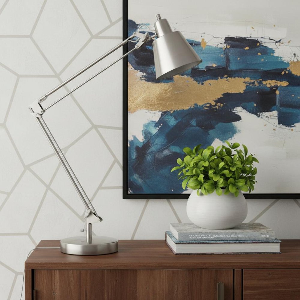 27" Nickel Metal Desk Table Lamp With Nickel Cone Shade