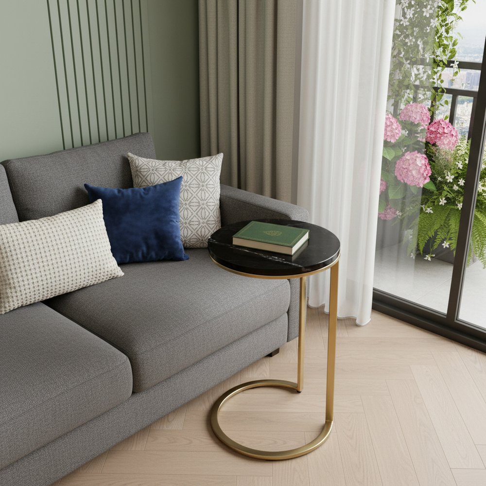 28" Black Marble Round End Table