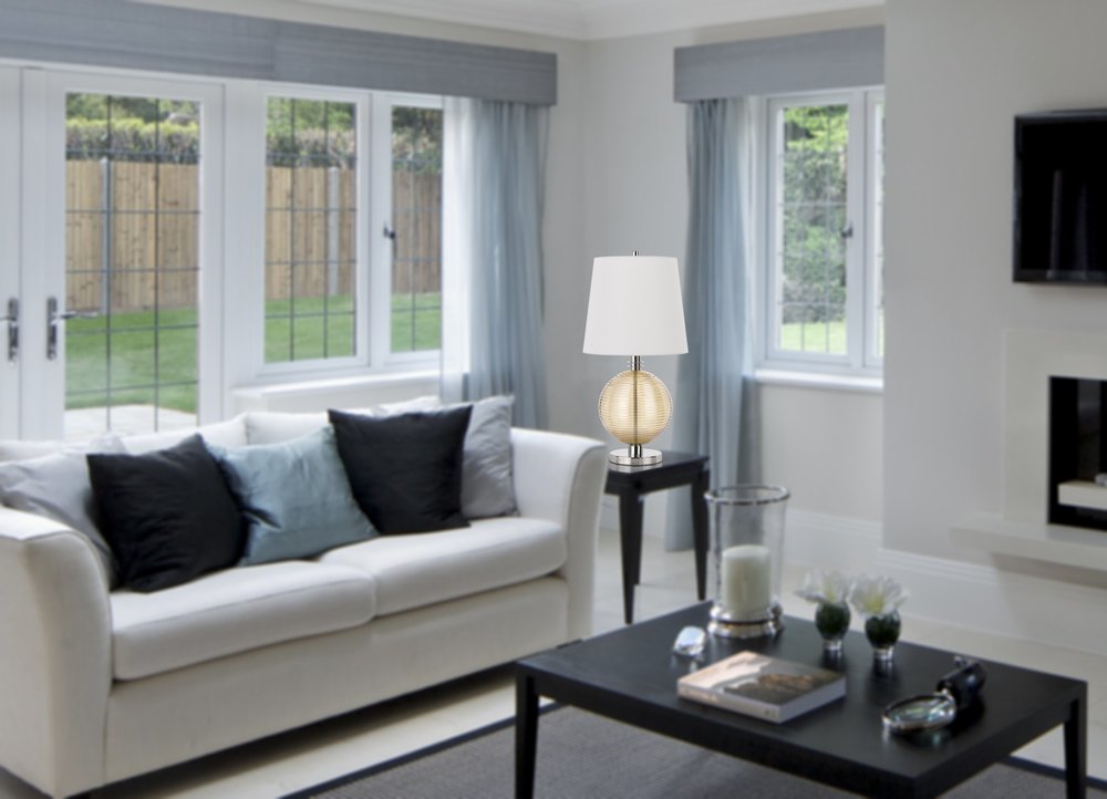 28" Nickel Metal Globe Table Lamp With White Empire Shade