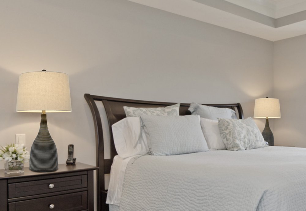 29" Black Ceramic Round Table Lamp With Beige Empire Shade