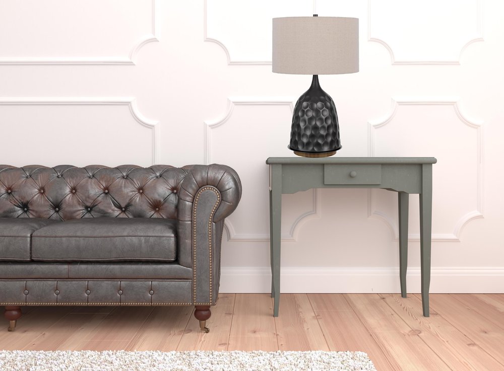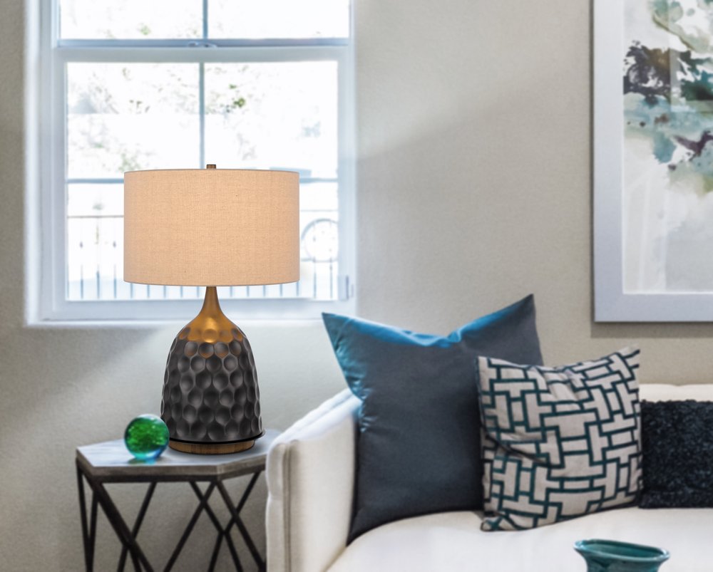 29" Gray Metal Table Lamp With Brown Drum Shade