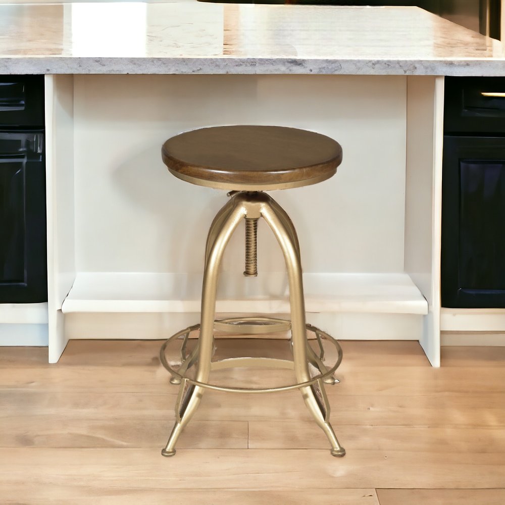 23" Brown And Gold Steel Swivel Backless Adjustable Height Bar Chair