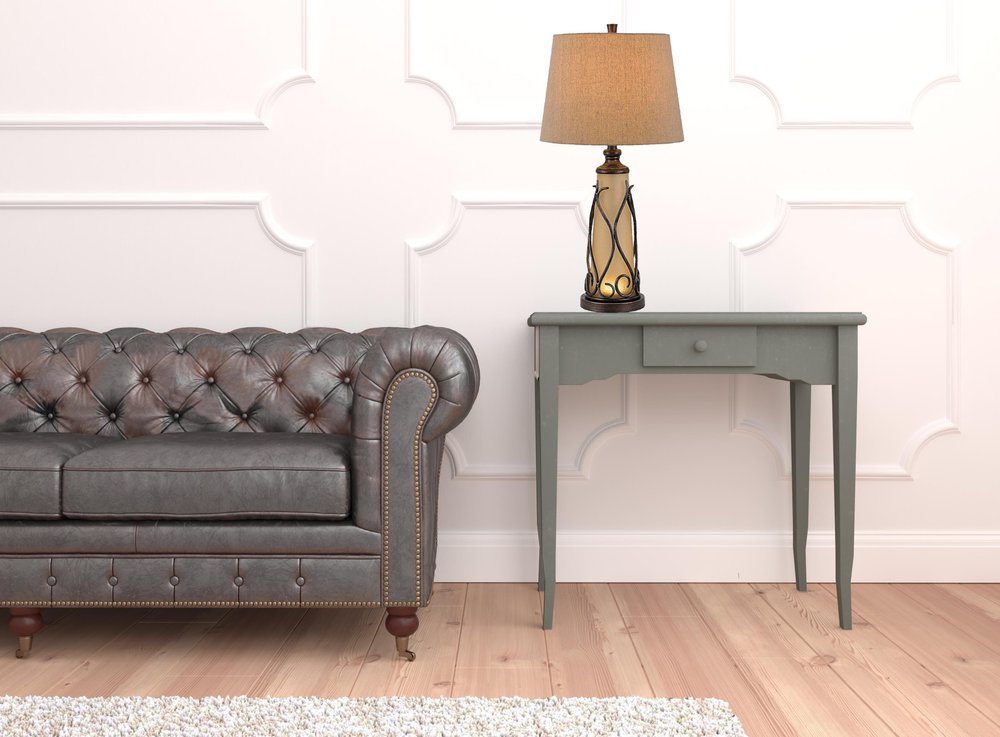 30" Brown Metal Two Light Table Lamp With Brown Empire Shade