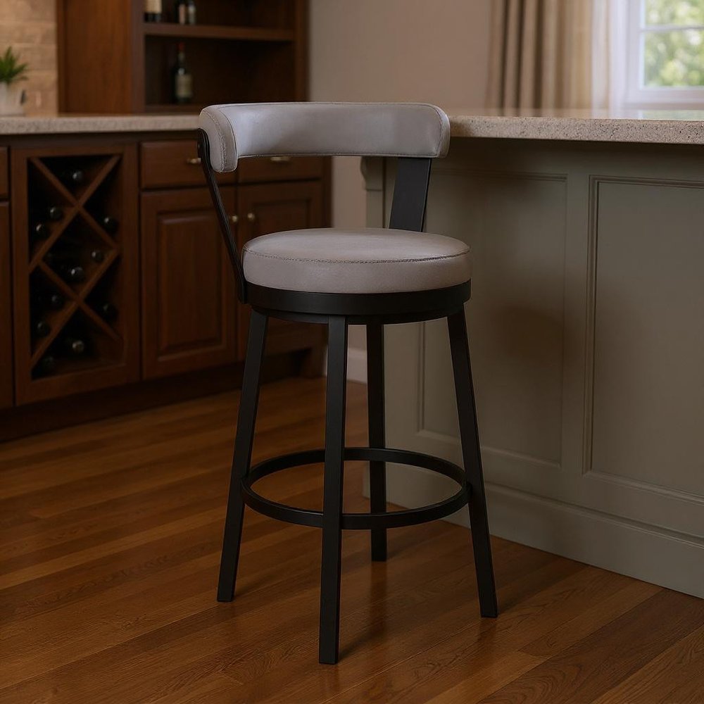 30" Gray And Black Iron Swivel Bar Height Bar Chair