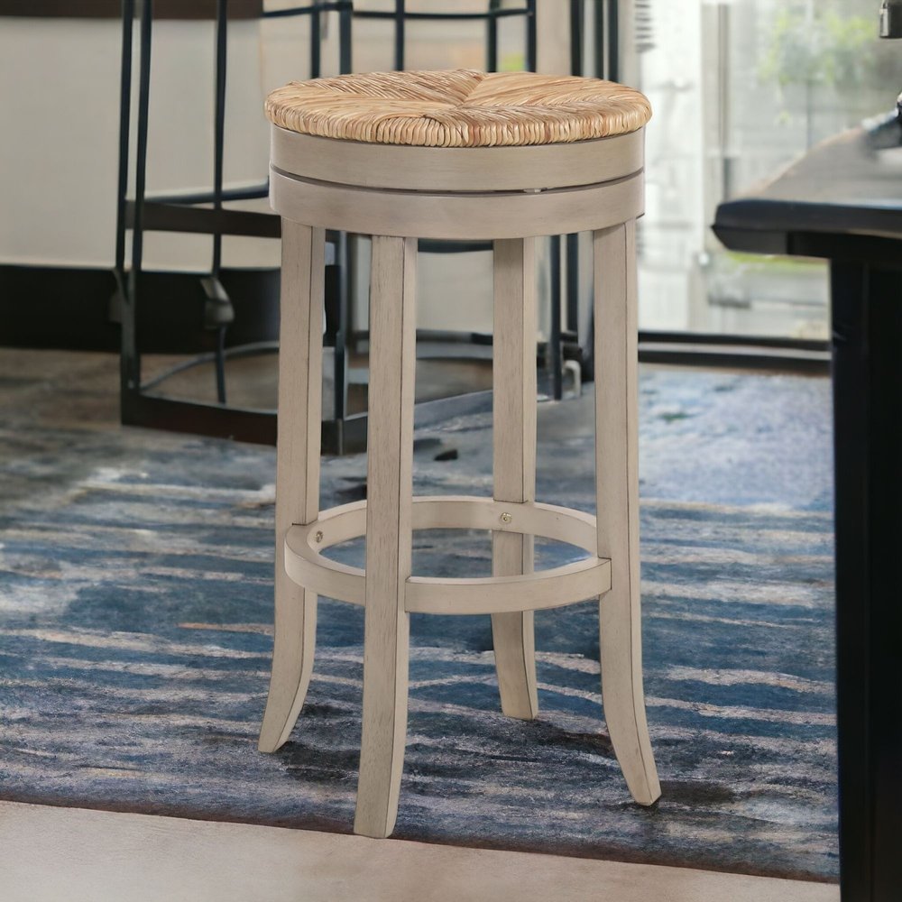 30" Natural And Gray Solid Wood Swivel Backless Bar Height Bar Chair