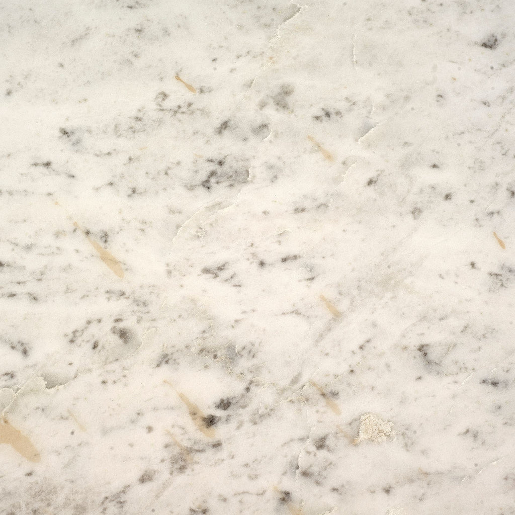 30" White And Black Rounded Marble And Metal Three Leg Base Dining Table