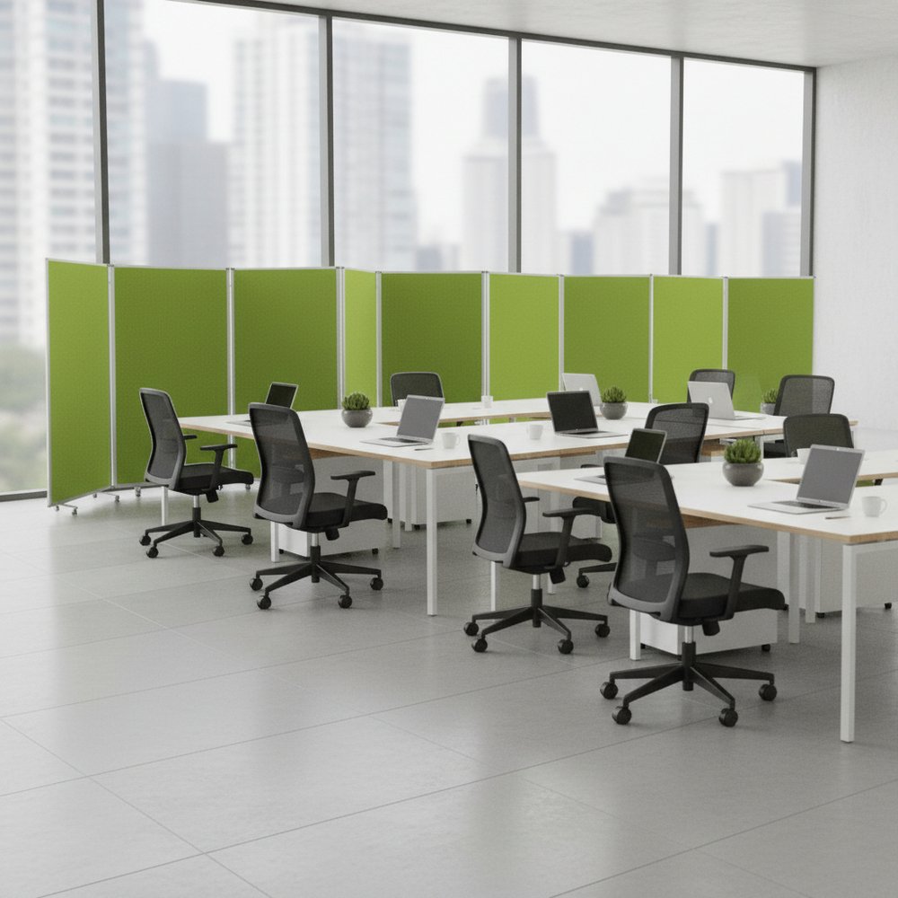 71" Green Iron Folding Nine Panel Screen Room Divider