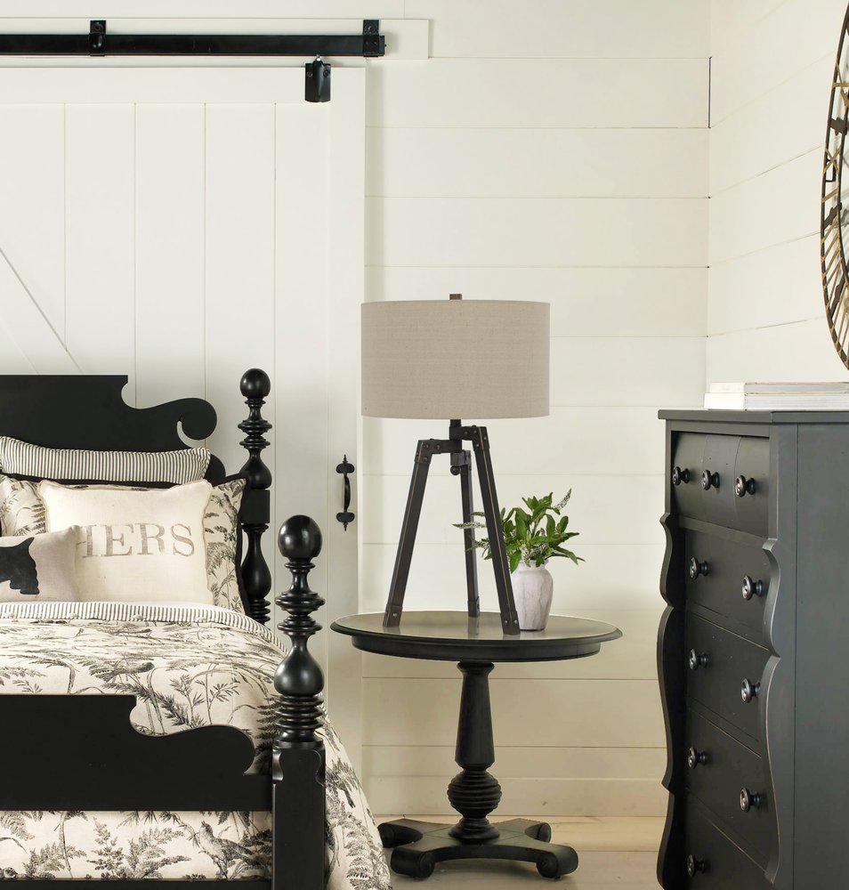 32" Charcoal Metal Tripod Table Lamp With Tan Drum Shade
