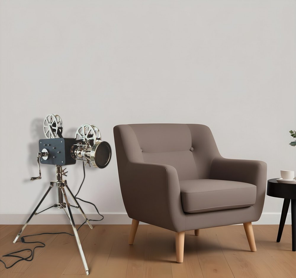 36" Black And Silver Tripod Floor Lamp With Metal Novelty Shade