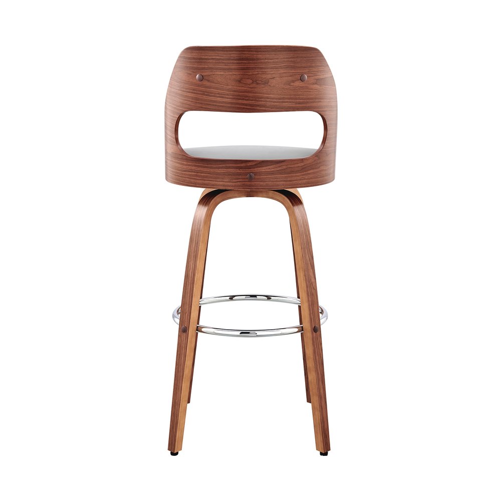 26" Gray and Brown Faux Leather Counter Height Swivel Bar Chair