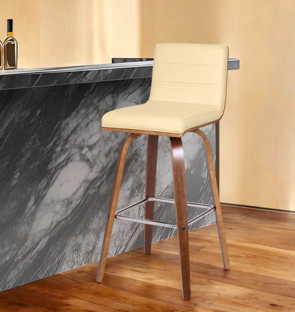 30" Cream and Brown Fabric and Iron Low Back Bar Height Swivel Bar Chair