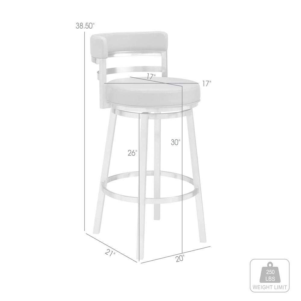 30" Blue And Silver Faux Leather And Iron Swivel Low Back Bar Height Bar Chair