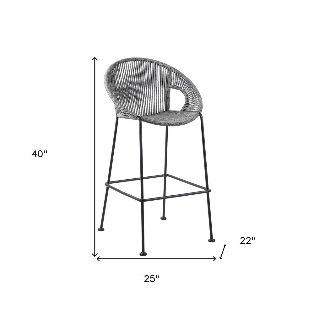40" Light Gray Metal Low back Outdoor Counter Height Bar chair with Footrest