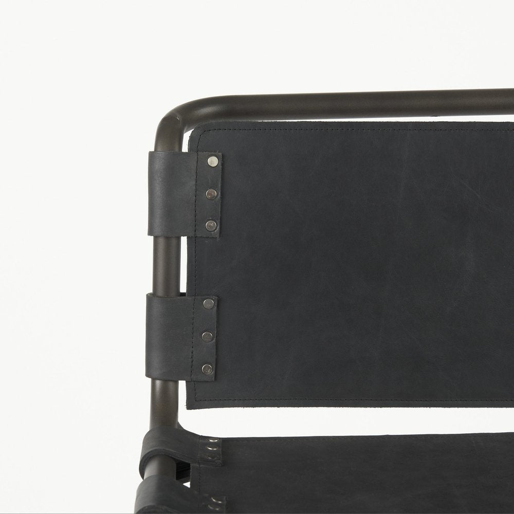 30" Black and Gray Leather and Iron Bar Height Bar Chair