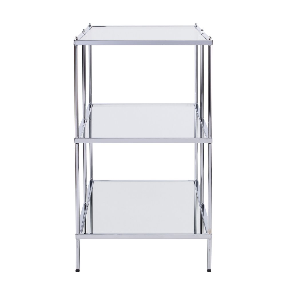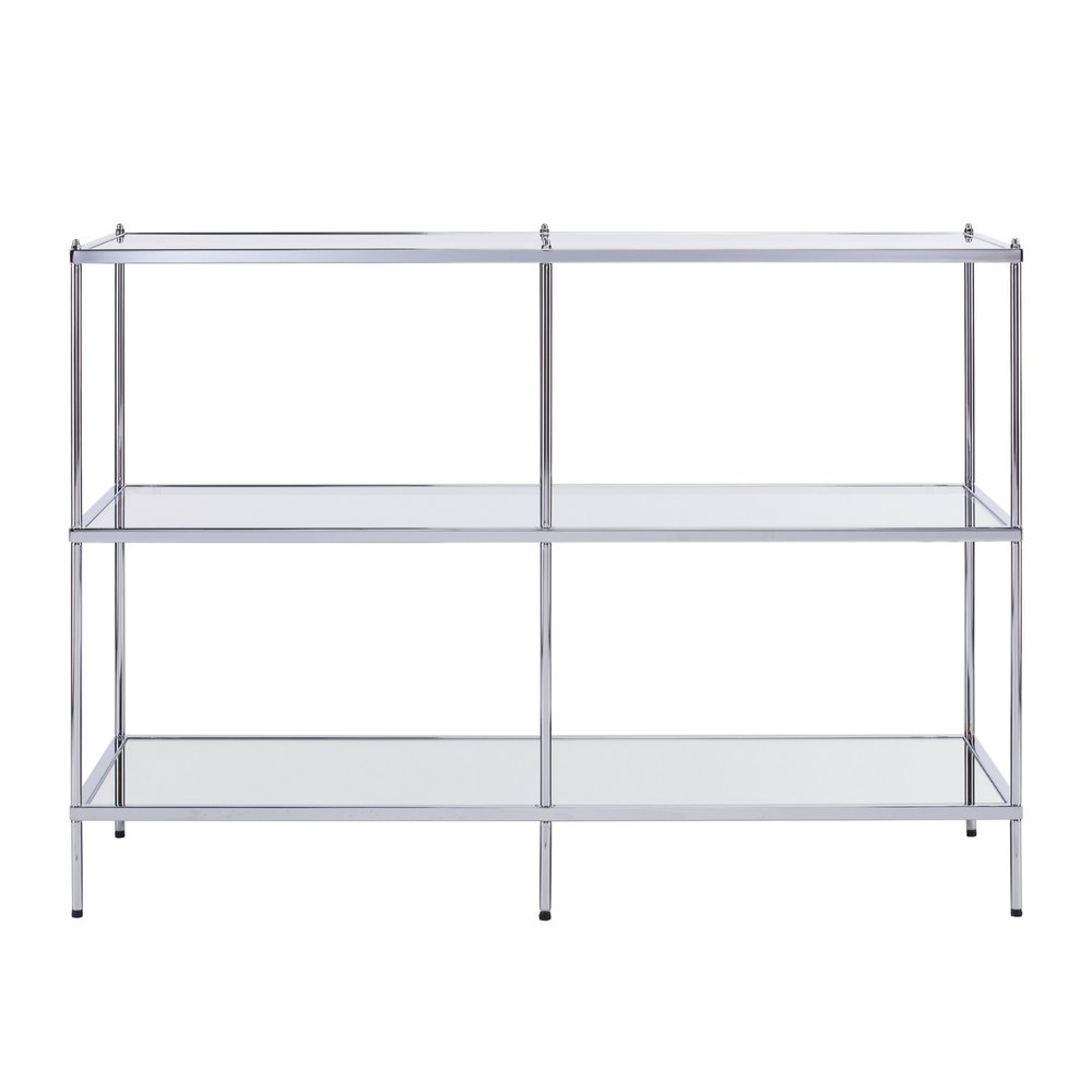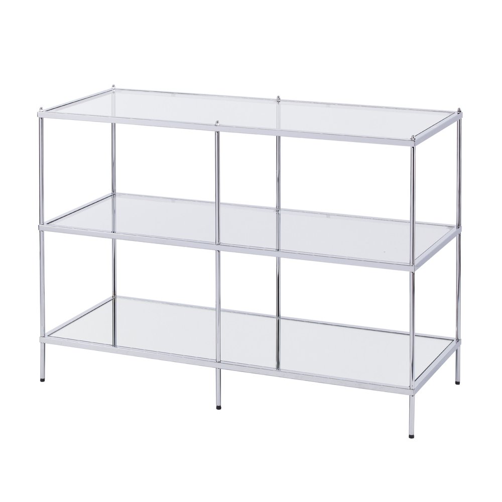 42" Clear and Silver Glass Mirrored Frame Console Table With Shelves