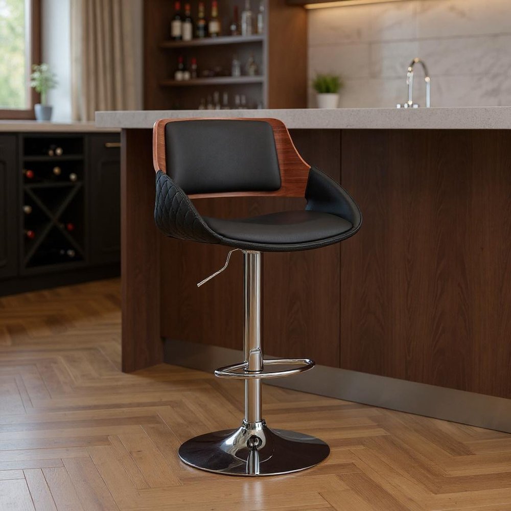 25" Black And Silver Iron Swivel Low Back Adjustable Height Bar Chair