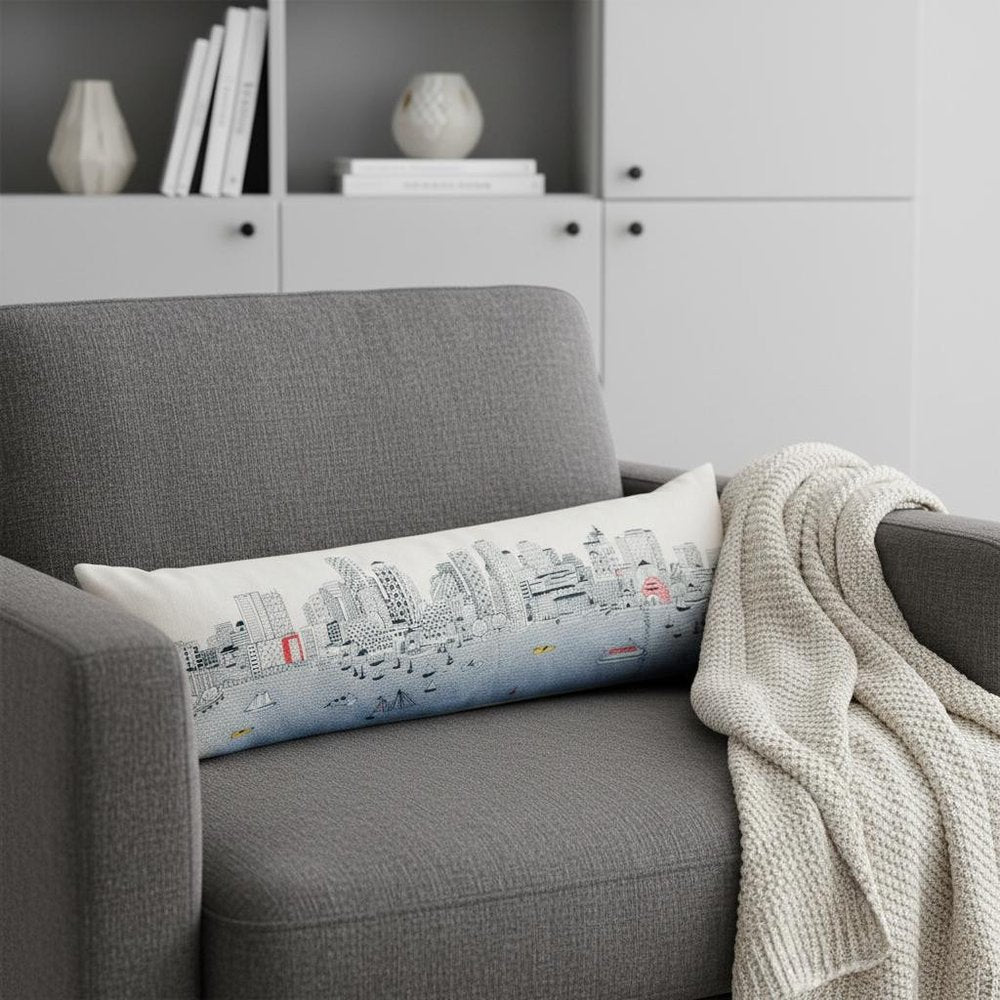 14" X 45" Cream Boston Daylight Skyline Lumbar Decorative Pillow